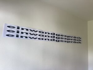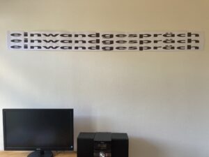 Dieses Wortspiel entstand in der Auseinandersetzung mit der Corona-Pandemie und beeindruckt allein schon durch seine Größe: Es erstreckt auf eine Länge von knapp 2 Metern und besitzt eine Höhe von ca. 30 cm.